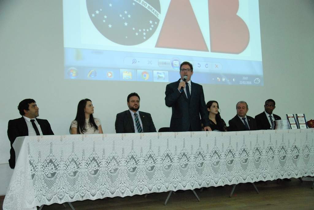 Participaram da mesa de cerimônia, o presidente da 54ª Subseção da OAB/MG, Alex Barbosa de Matos; a presidente da comissão da Mulher Advogada da Subseção, Laura Braga Poubel; o presidente do conselho do Jovem Advogado, Arilson Nobre; o presidente da comissão de direito empresarial, João Batista de Sales; o presidente da OAB Abre Campo, Jesus José de Miranda; a advogada Tamires de Abreu Cosendey e o delegado geral de Polícia Civil, Carlos Roberto Souza da Silva.