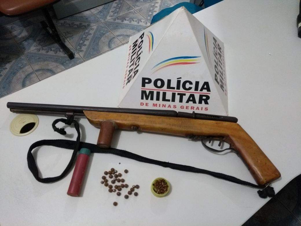 A arma de fabricação caseira estava escondida no meio da lavoura. Foram apreendidas ainda 32 esferas metálicas, 70 espoletas e uma porção de pólvora.