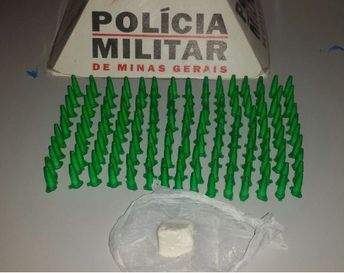 No decorrer da abordagem, os militares notaram que o homem tinha jogado uma sacola ao solo, após verificarem foram encontrados 150 pinos de cocaína e uma pedra de crack.