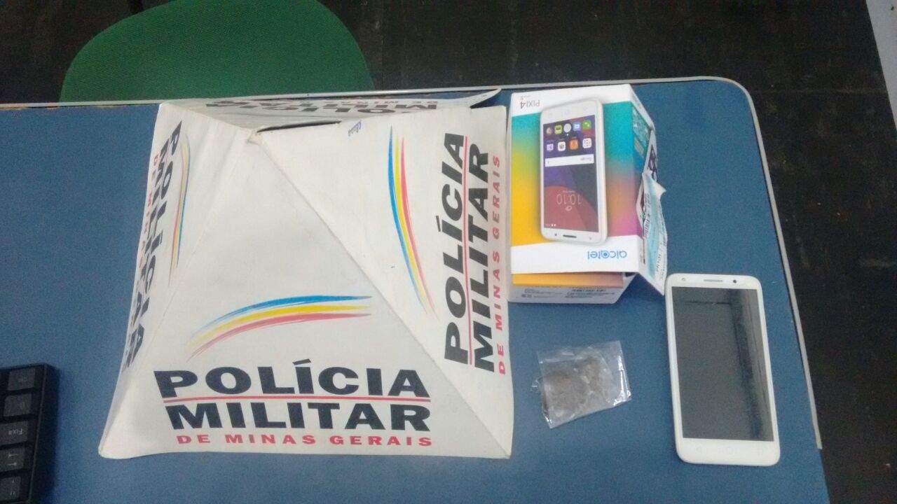 Os dois autores foram presos e levados para a delegacia com o aparelho recuperado e bucha de maconha apreendida.