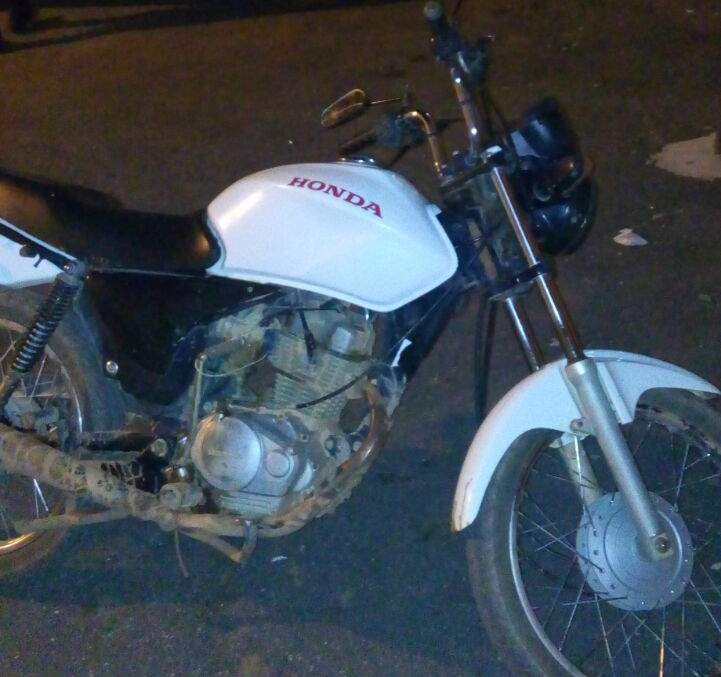 Foi constatado que a motocicleta apresentava a numeração do chassi raspada e a placa de outro veículo.