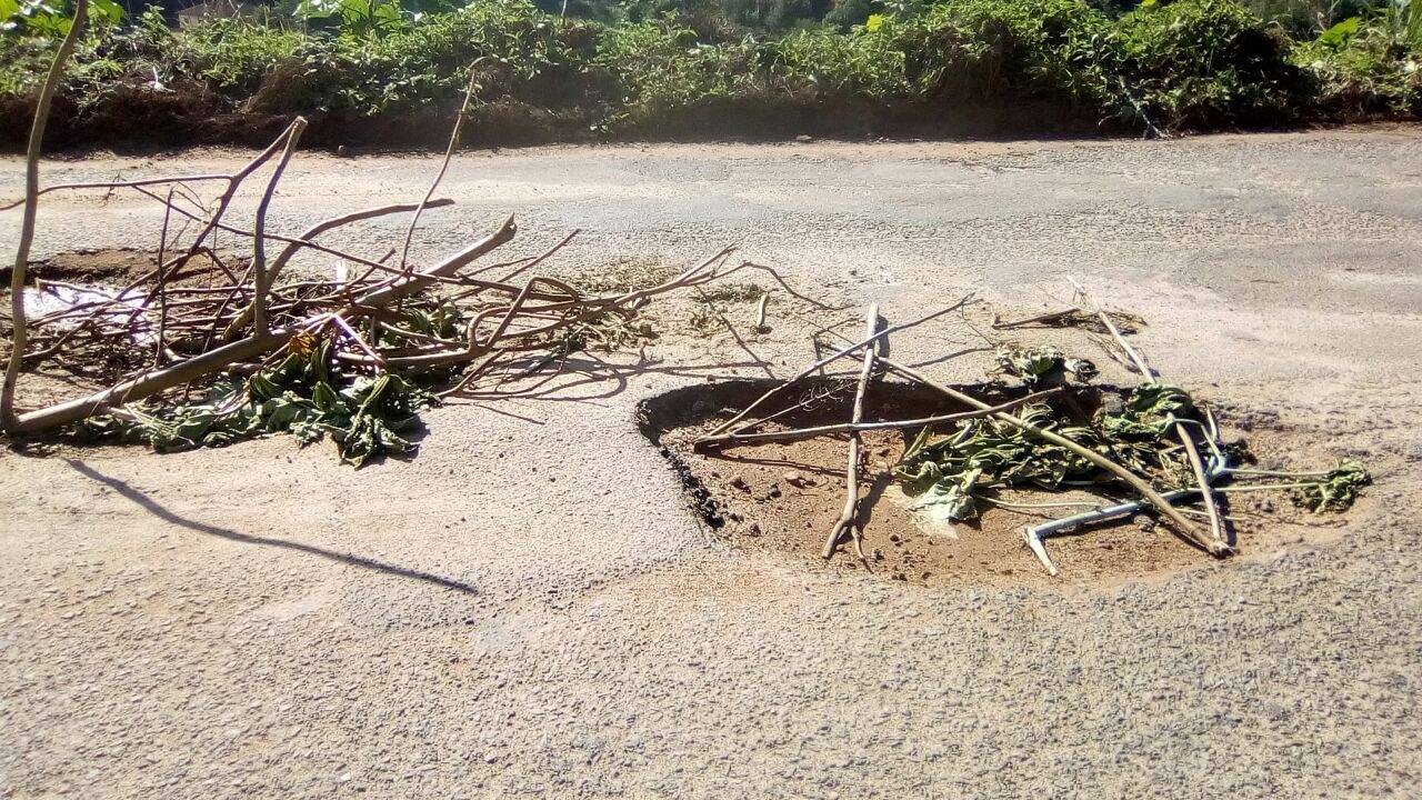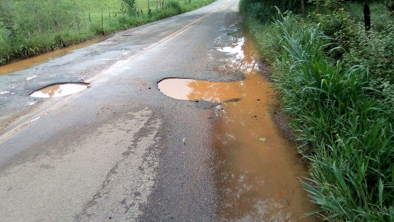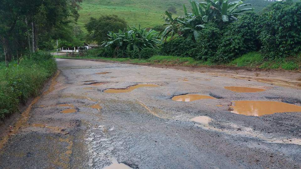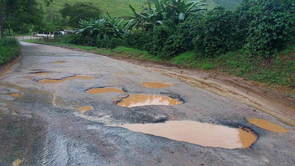 Na estrada, a sequência de buracos começa a aparecer logo na saída de Manhuaçu. No trecho até Simonésia, o problema ficou ainda pior, com buracos de todos os tamanhos.
