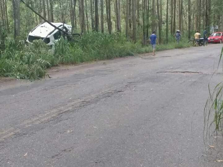 O motorista desviou de outro veículo que estava na contramão, desviando de buracos. No sentido contrário vinha mais um veículo. Após perder o controle da direção, o carro saiu da pista.