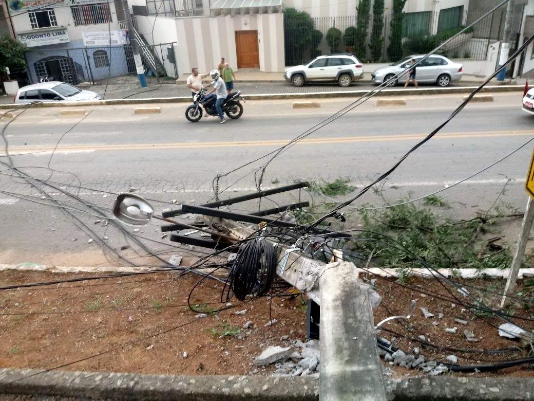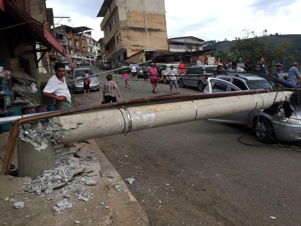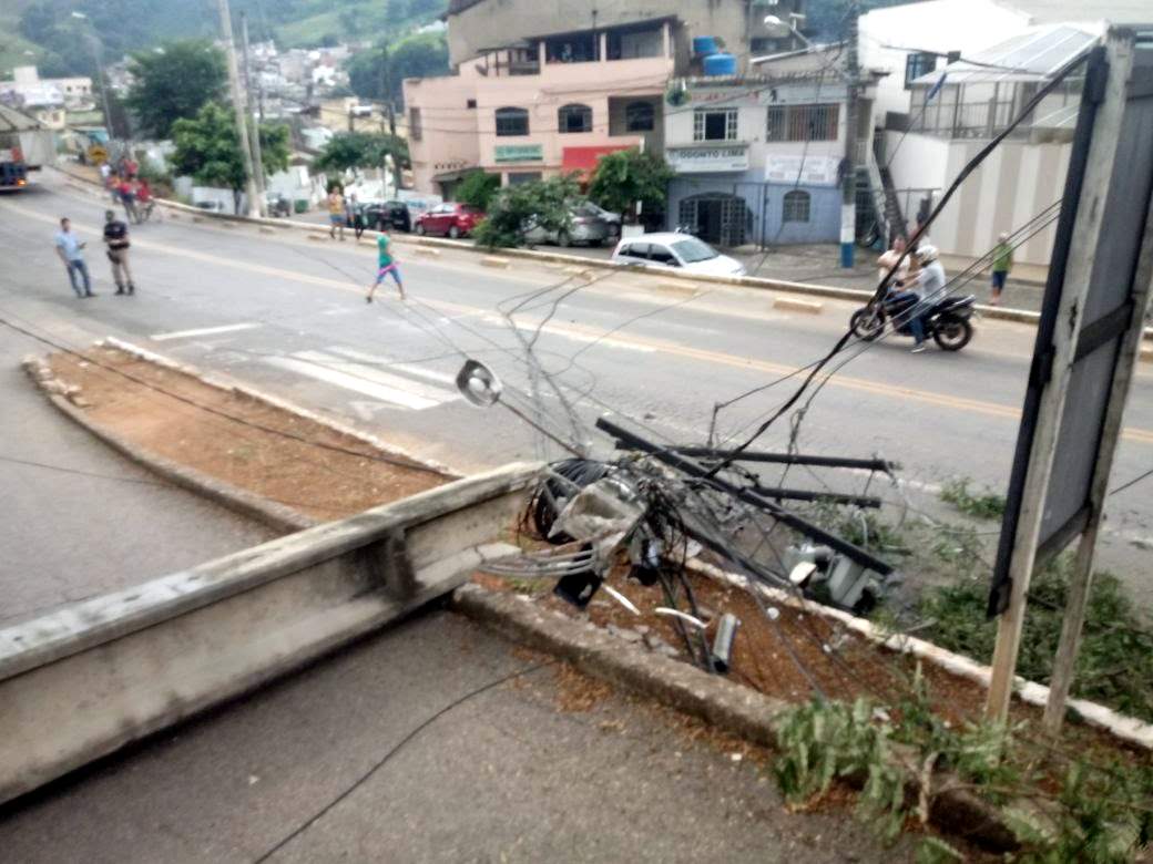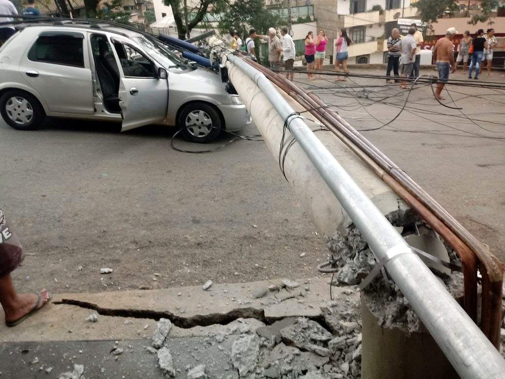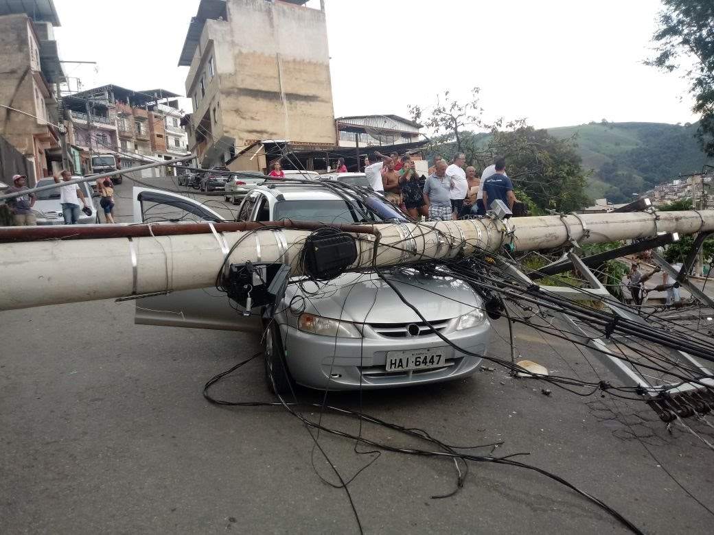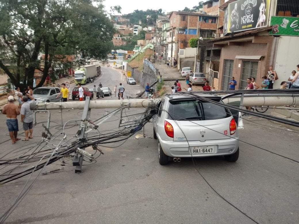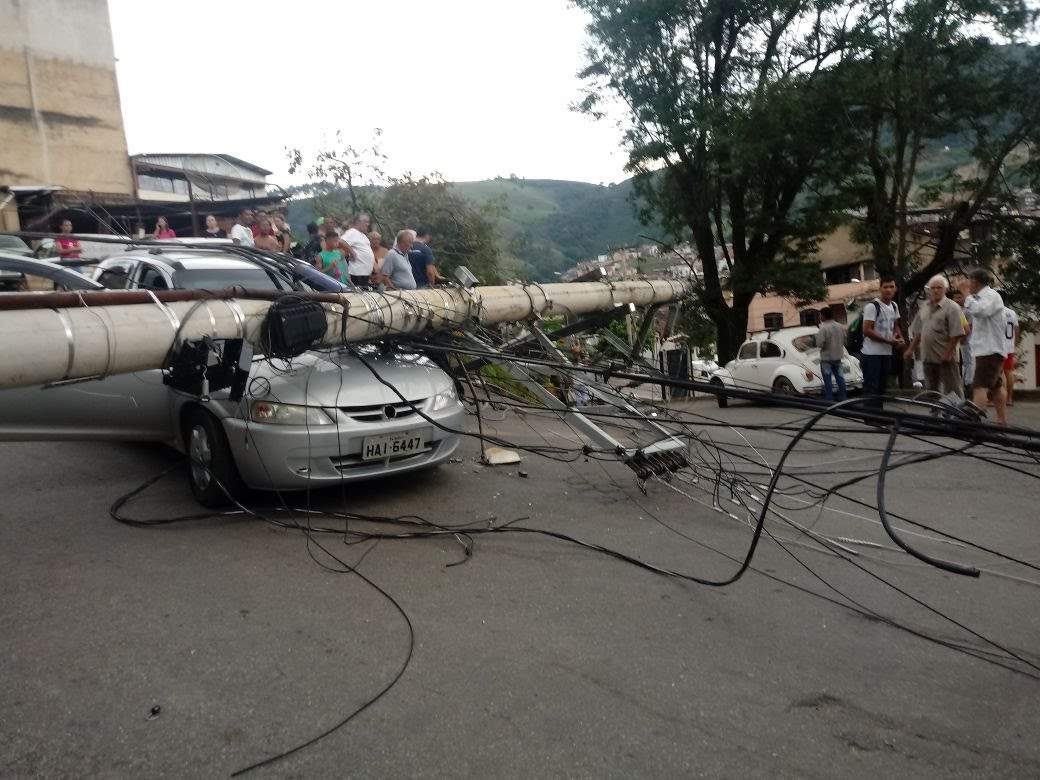 Um dos postes ainda atingiu um carro que descia a rua de acesso ao bairro Nossa Senhora Aparecida. Outros dois veículos também foram danificados. Felizmente, ninguém se feriu.