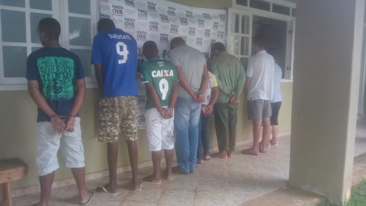 Foram expedidos mandados de prisão para oito acusados de tráfico de drogas, dos quais sete foram presos e um está foragido. Equipes encontraram grande quantidade de droga enterrada aos arredores da residência de Wellington Birico, apontando pela Polícia Civil como chefe da organização. “Além de grandes porções de crack, aprendemos seis barras de maconha, totalizando aproximadamente 3,5 kg. Com Birico foi apreendida uma pistola 380 e 9 munições de mesmo calibre”, detalha o delegado Felipe de Ornelas Caldas.