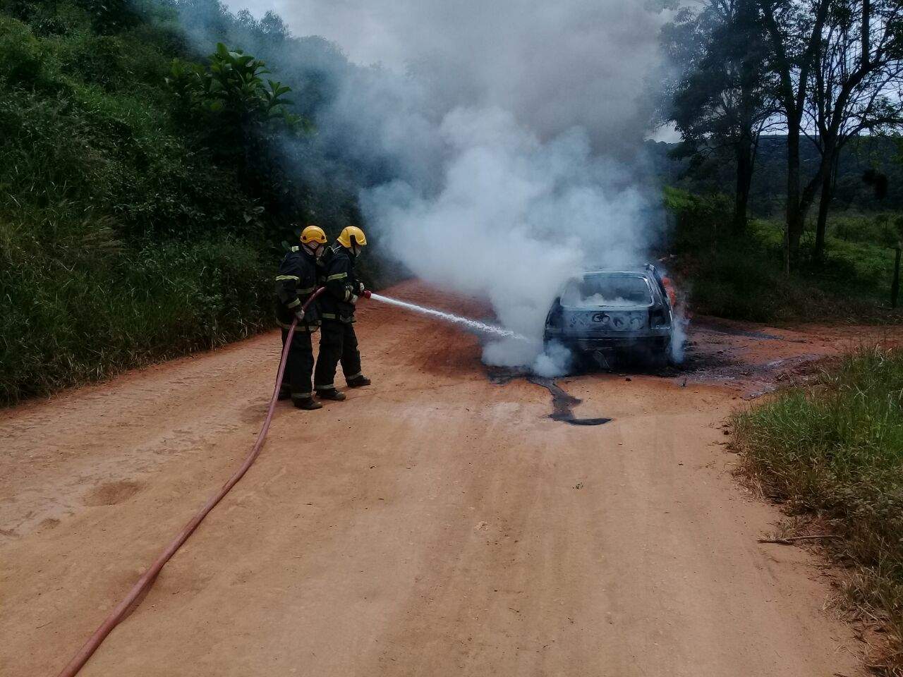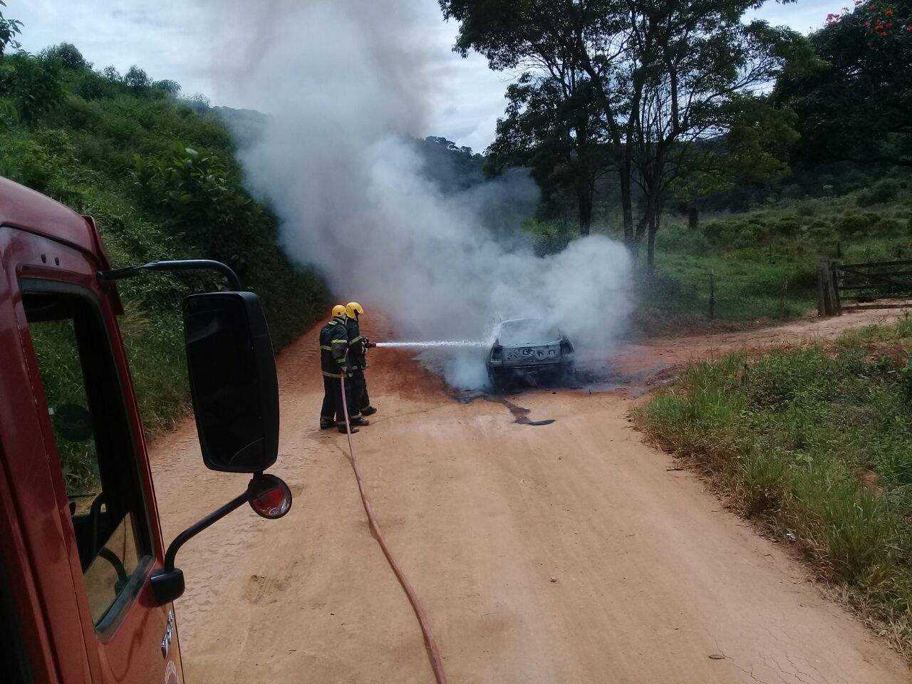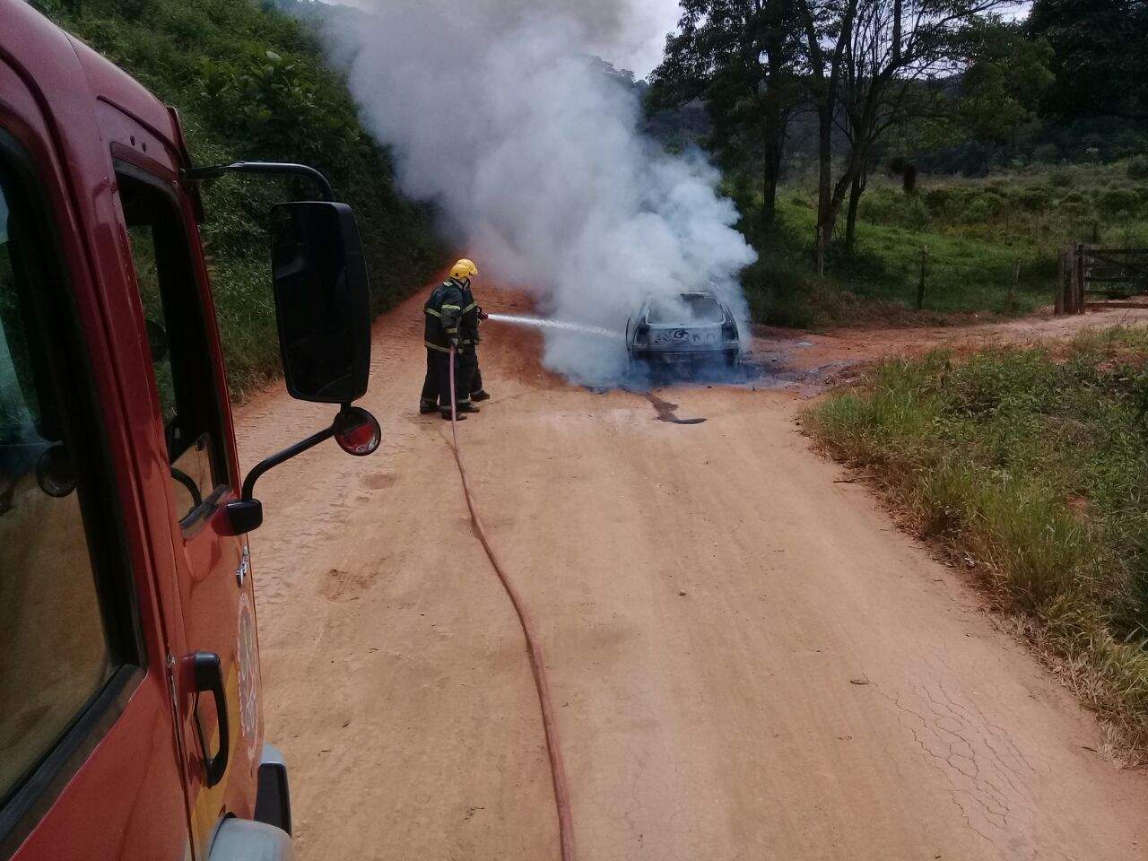 MANHUAÇU (MG) - Militares do 2º Pelotão do Corpo de Bombeiros de Manhuaçu, no início da tarde desta quarta-feira, 21/03, foram até a região do Coqueiro Rural onde um automóvel estava pegando fogo.