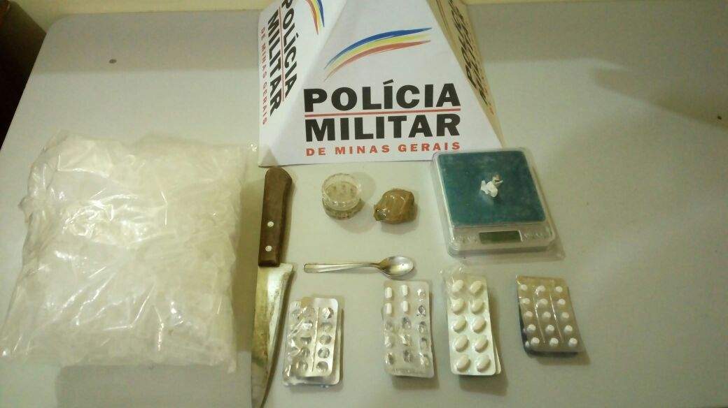 LAJINHA (MG) - Um homem de 25 anos foi preso pela Polícia Militar durante operação policial no bairro São Sebastião, em Lajinha, no dia 05/04. Foram apreendidos 457 pinos usados para embalar cocaína, um tablete, sementes e um triturador de maconha, além de comprimidos de medicamentos usados para serem misturados à entorpecentes e uma balança de precisão.