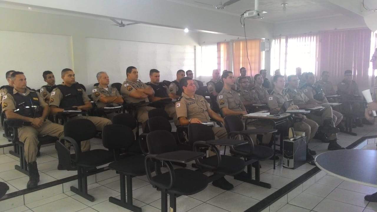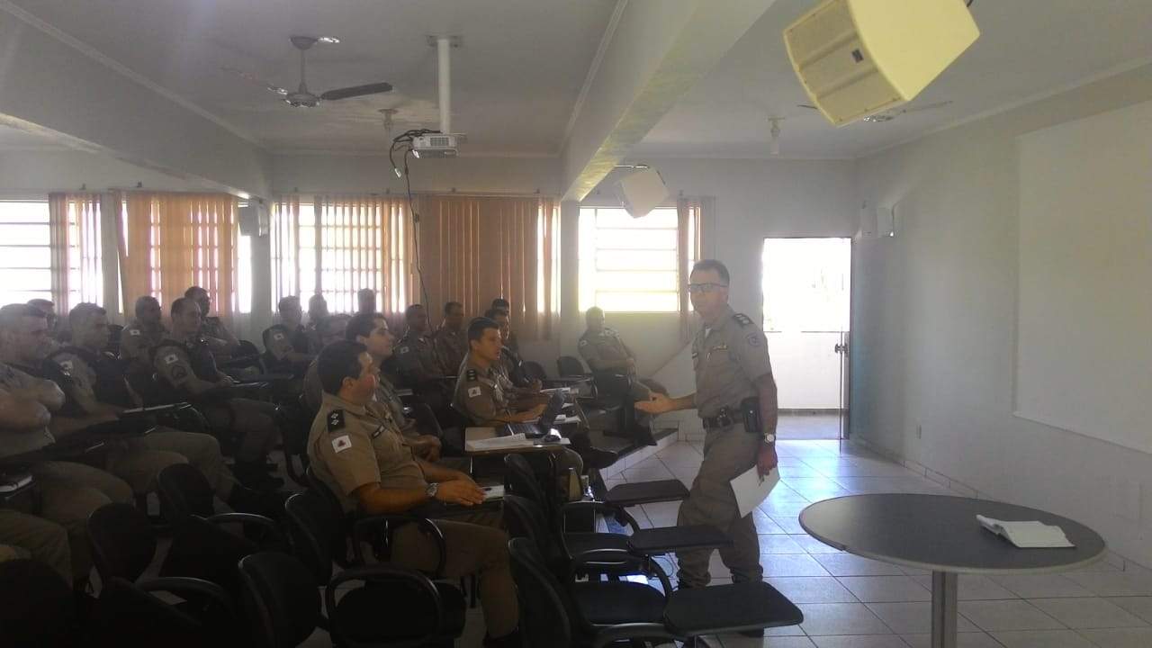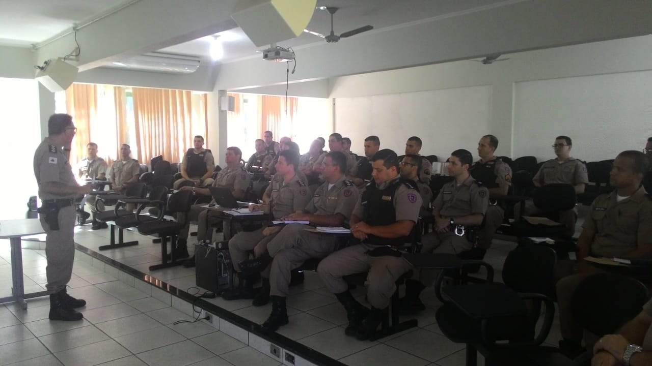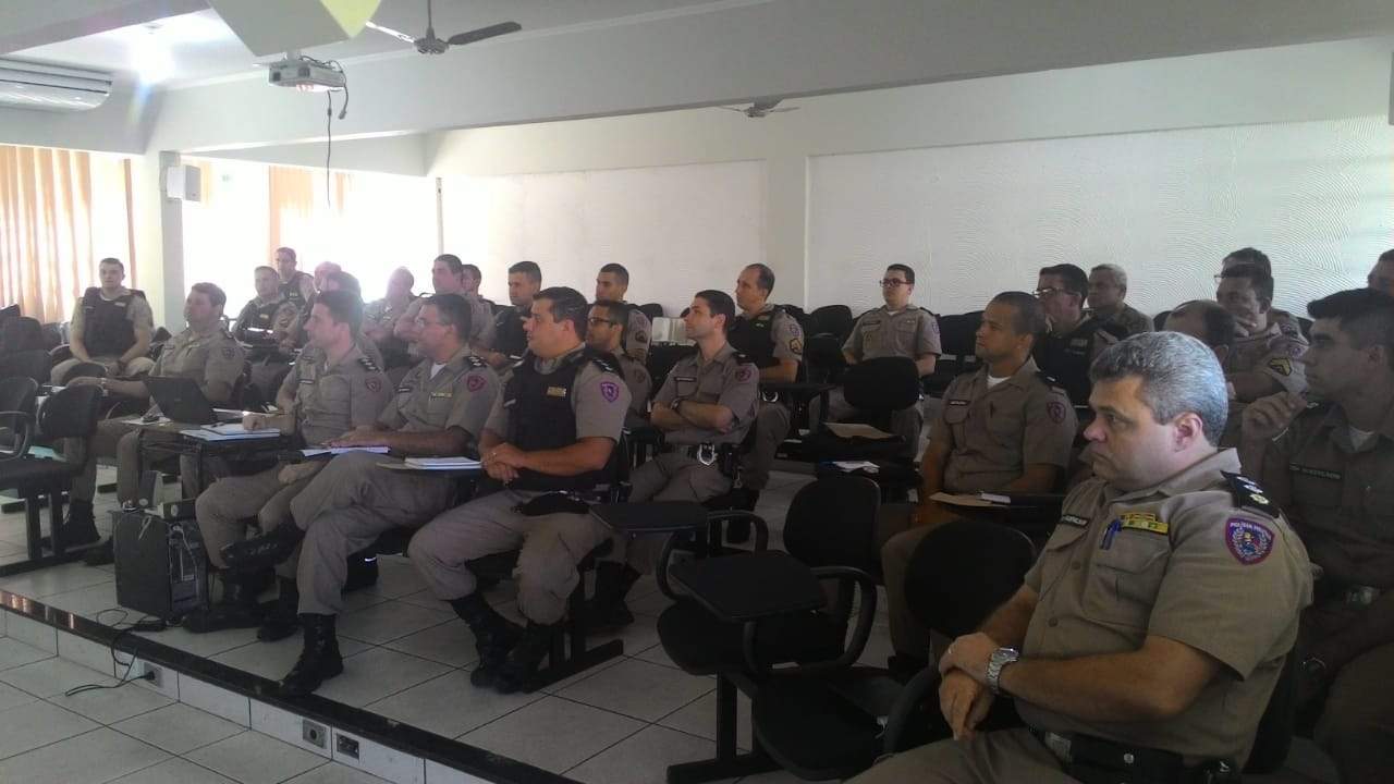 O comandante do 11º Batalhão, Tenente Coronel Sérgio Renato da Silva e os comandantes de frações de todas as 24 cidades sob responsabilidade do 11º BPM se reuniram para analisar os dados estatísticos dos índices criminais da área de atuação da Unidade.