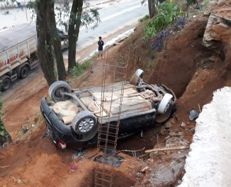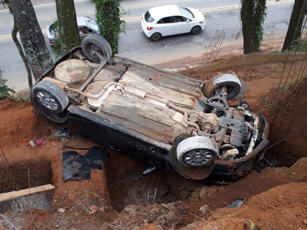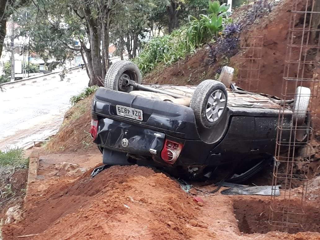 O Gol de cor preta com quatro ocupantes desceu a rua Rio Grande e, após fazer a curva, o condutor não percebeu a cratera no trecho da rua da Paz. Segundo ele, como é de Caratinga e não havia sinalização, não conseguiu frear o carro.