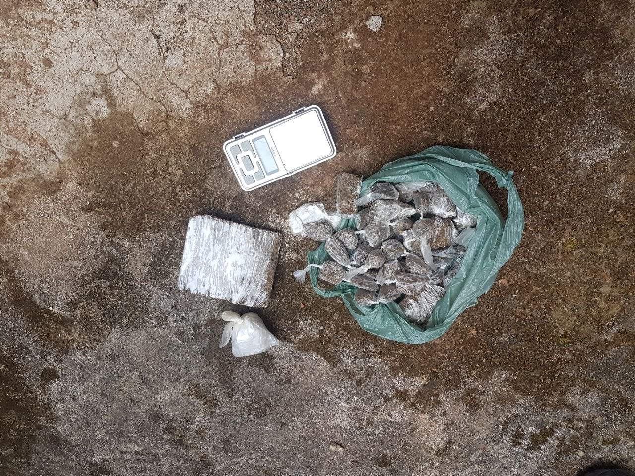 Na Delegacia de Polícia, na ocasião de sua oitiva perante a equipe da Polícia Civil, o investigado confessou que guardava mais drogas e informou o local específico. Assim, ato contínuo, a equipe de Investigadores de Polícia se dirigiu ao endereço, onde logrou apreender cinquenta e quatro buchas de maconha embaladas em sacolas plásticas, prontas para a venda, treze tabletes de maconha e uma balança de precisão, além de dinheiro proveniente do tráfico de drogas.