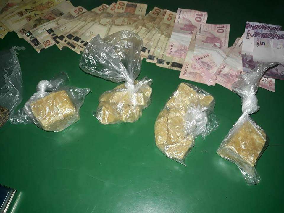 Após o flagrante, a jovem ainda retirou das roupas íntimas dela 126 pedras de crack, durante as buscas na casa do casal l, foram apreendida a quantia de R$1.210,00 em dinheiro, além de uma célula de R$100,00 falsificada.