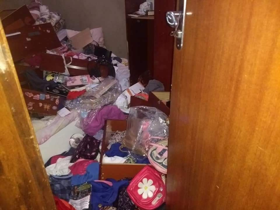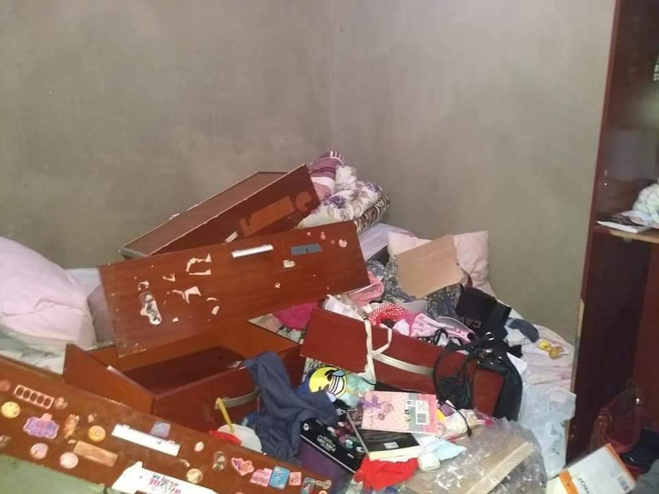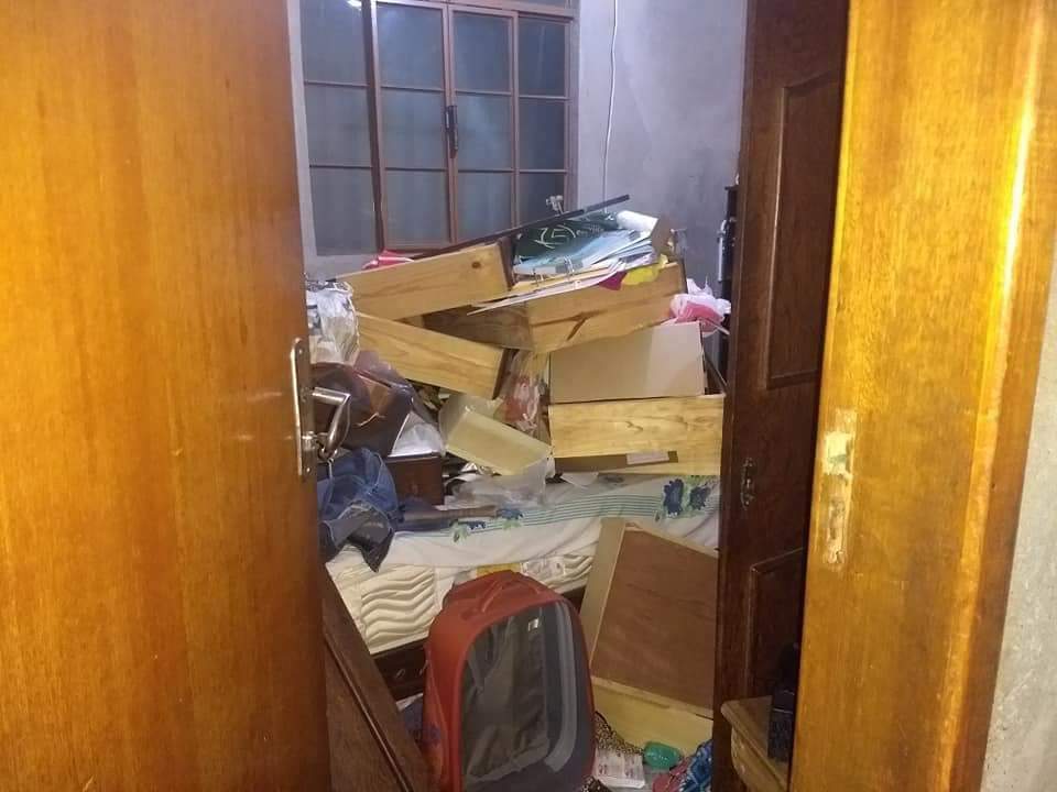 Diversos cômodos da casa foram revirados. Portas de guarda-roupas e outros móveis foram quebrados.