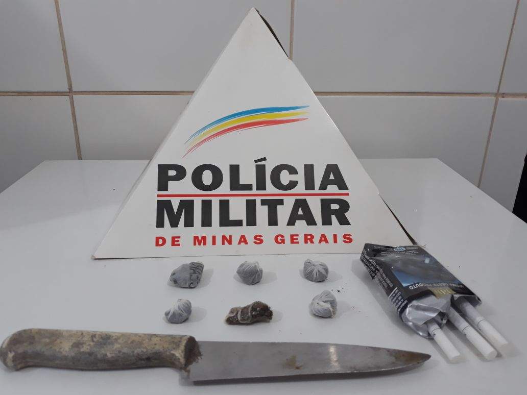 Os policiais militares fizeram a abordagem imediata. Foi encontrada uma faca e um maço cigarro que haviam sido jogados no chão. No hidrômetro, a equipe da PM encontrou seis buchas de maconha.