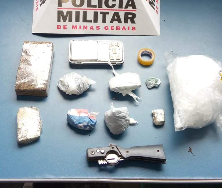 MANHUAÇU (MG) - Uma balança de precisão, três tabletes de maconha, cinco buchas de maconha, um tubo plástico com restos de cocaína, material para dividir e embalar drogas foram apreendidos no bairro Santa Luzia, nesta segunda-feira, 14/05.