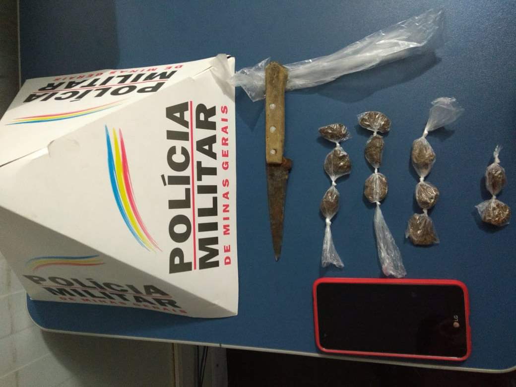 Além do espaço de convivência, a equipe da PM foi até a casa de um dos suspeitos. Foram apreendidas onze buchas de maconha, uma faca, um celular e várias sacolinhas para embalar drogas.