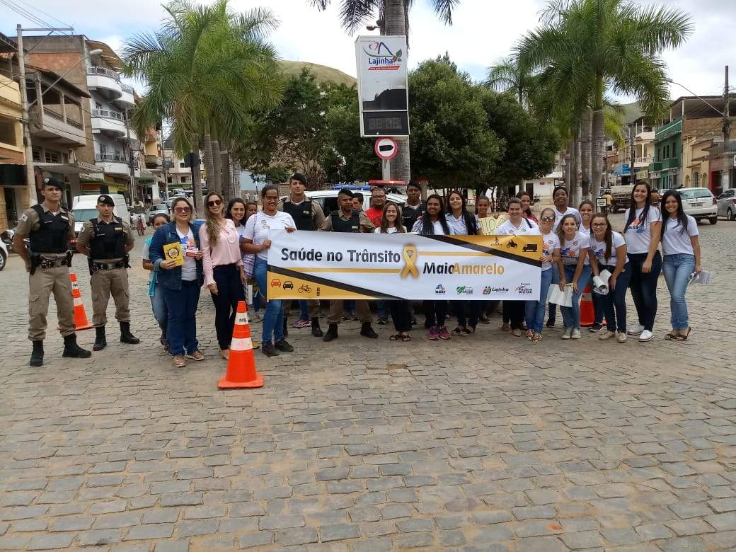 LAJINHA (MG) - Foram realizadas “Ações referente à campanha Maio Amarelo” , dia 22/05, com participação da PMMG, Secretaria de Saúde e alunos da rede municipal de Lajinha
