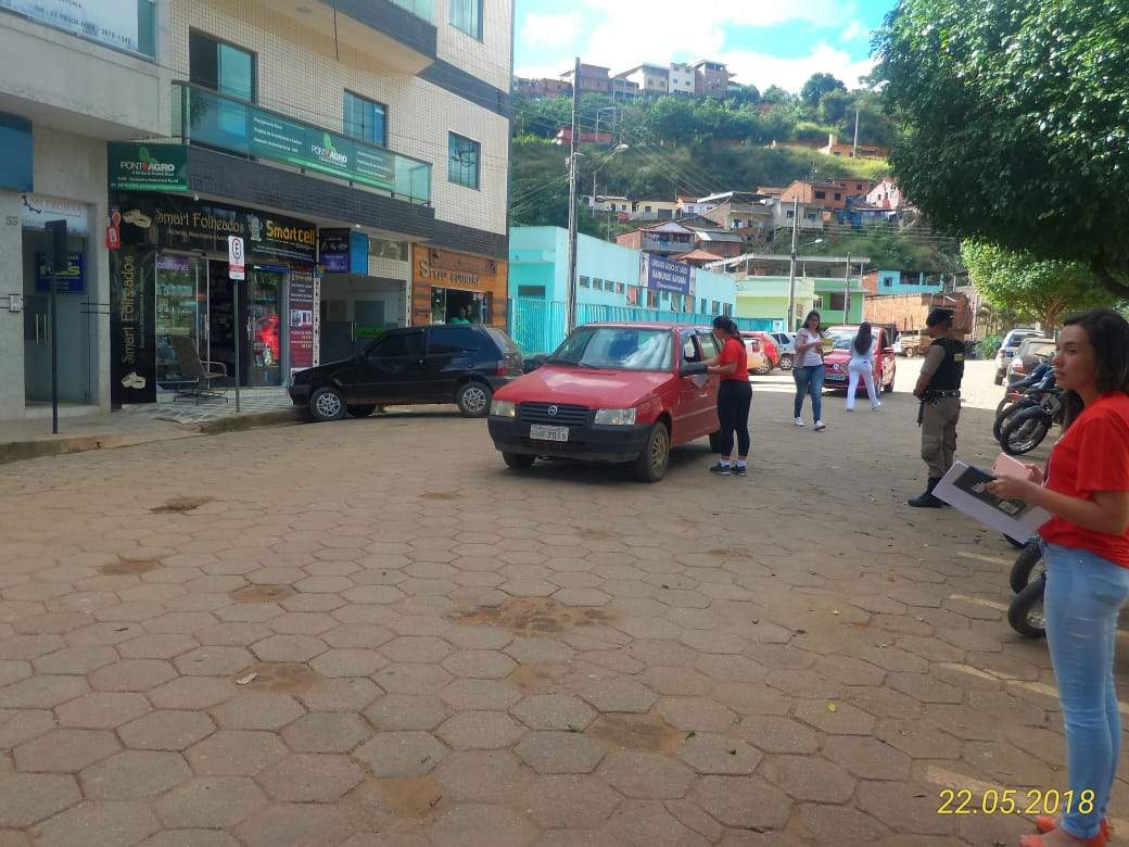 Realizaram a entrega de panfletos educativos e orientações aos condutores de veículos automotores, referente às boas práticas a serem adotadas no trânsito, como a utilização do cinto de segurança e velocidade de acordo com a permitida na via.