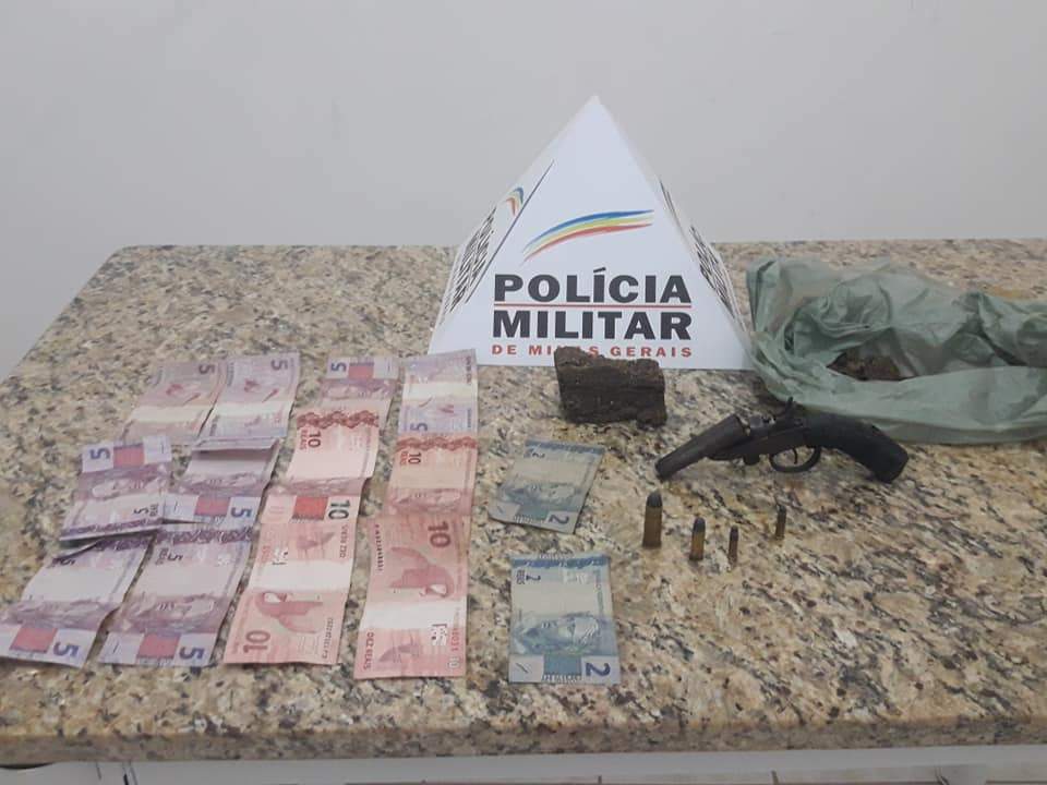 SANTANA DO MANHUAÇU (MG) - A Polícia Militar de Santana do Manhuaçu registrou ocorrência de tráfico de drogas e posse irregular de arma de fogo e munições neste domingo, 27/05.