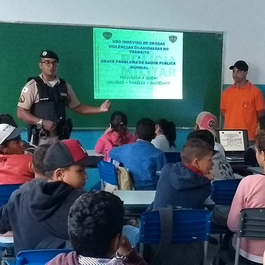 ORIZÂNIA (MG) - Visando ações e campanhas durante o mês “Maio Amarelo”, militares do Destacamento da Polícia Militar de Orizânia realizaram palestras educativas na Escola Municipal Xenofonte Mercadante para os alunos do ensino médio.