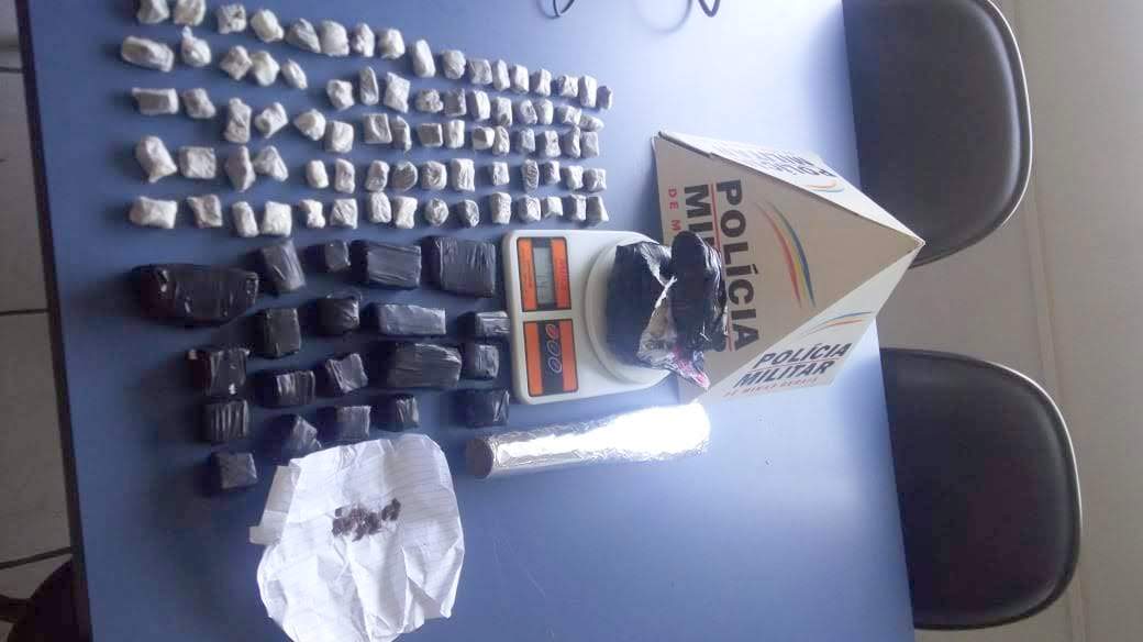 MARTINS SOARES (MG) - A Polícia Militar de Martins Soares apreendeu 80 buchas de maconha, duas barras prensadas de cocaína (700 gramas), uma balança de precisão e dois celulares numa ocorrência no distrito de Pinheiros de Minas, nesta quarta-feira, 06/06.