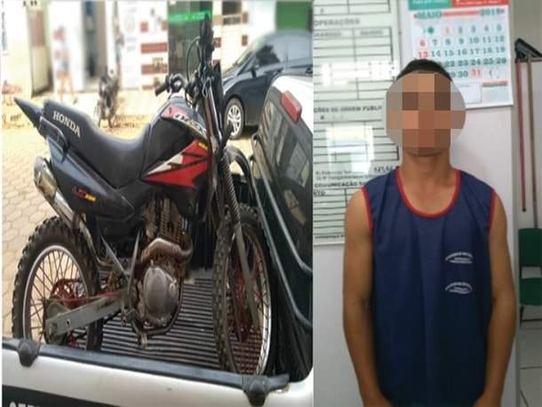 A motocicleta foi apreendida e o autor encaminhado à Delegacia de Polícia Civil de Divino para demais providências cabíveis.