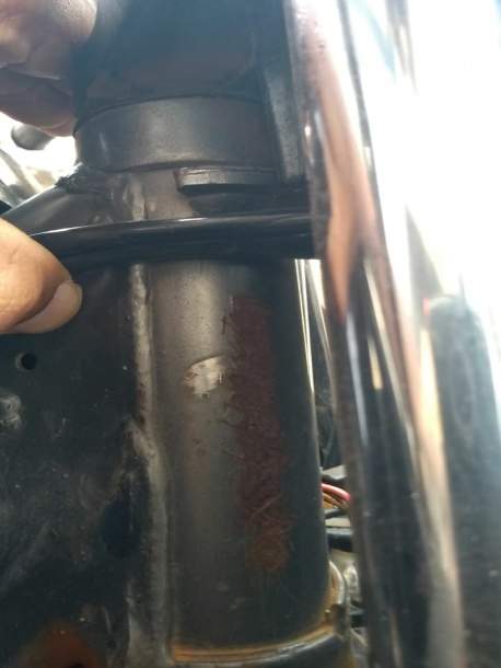 Foi constatado que a moto estava com os números do chassi e bloco do motor raspado (adulterados), com fortes suspeitas de ser um veículo de roubo/furto.