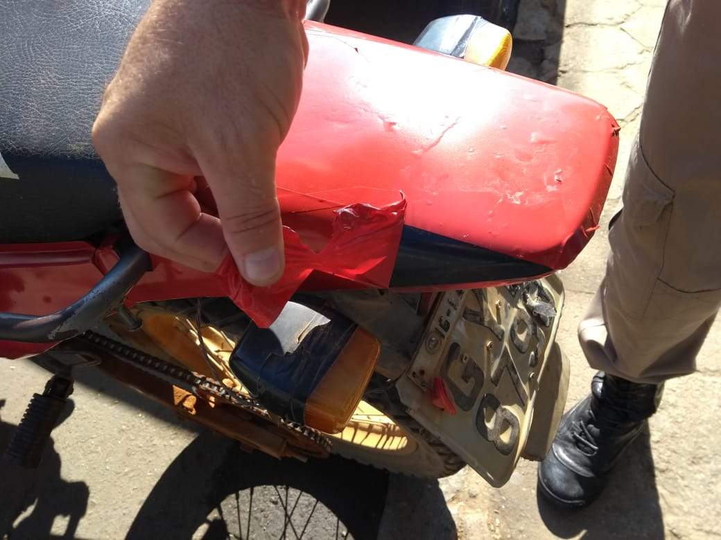 O autor chegou ao local em uma motocicleta com características adulteradas. Ele usou durepox para alterar a placa e fita vermelha para mudar a cor do veículo e ainda pintou o rosto com carvão para não ser reconhecido.