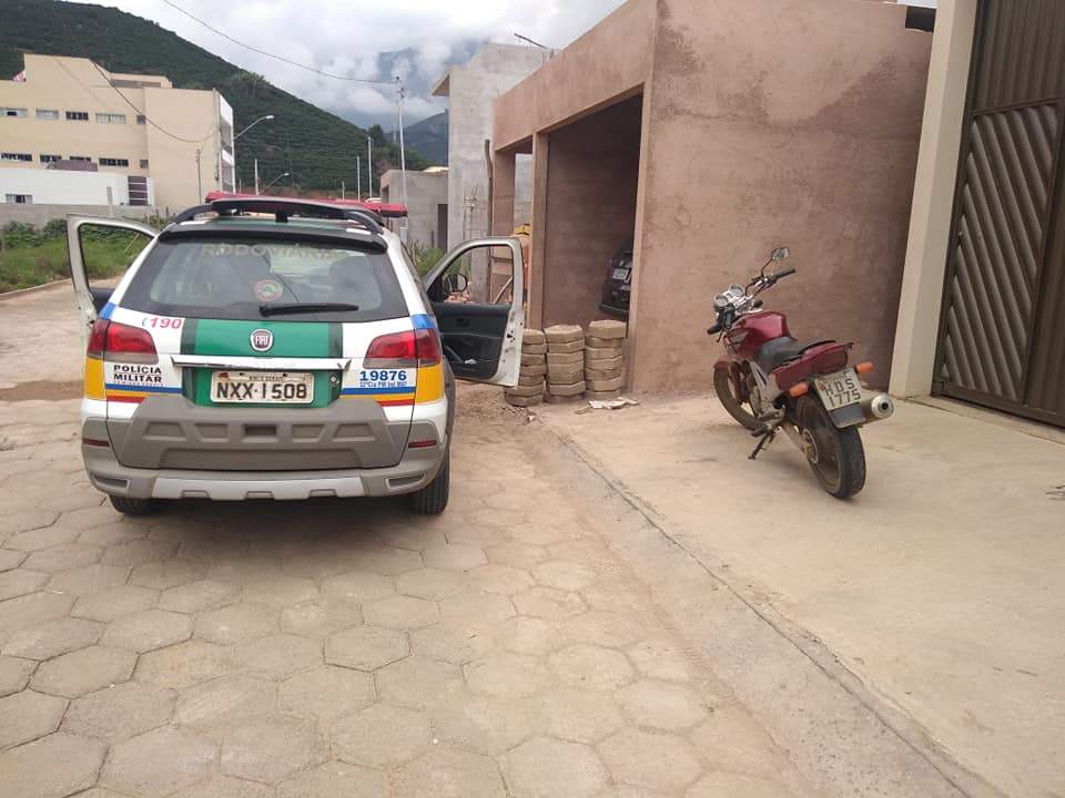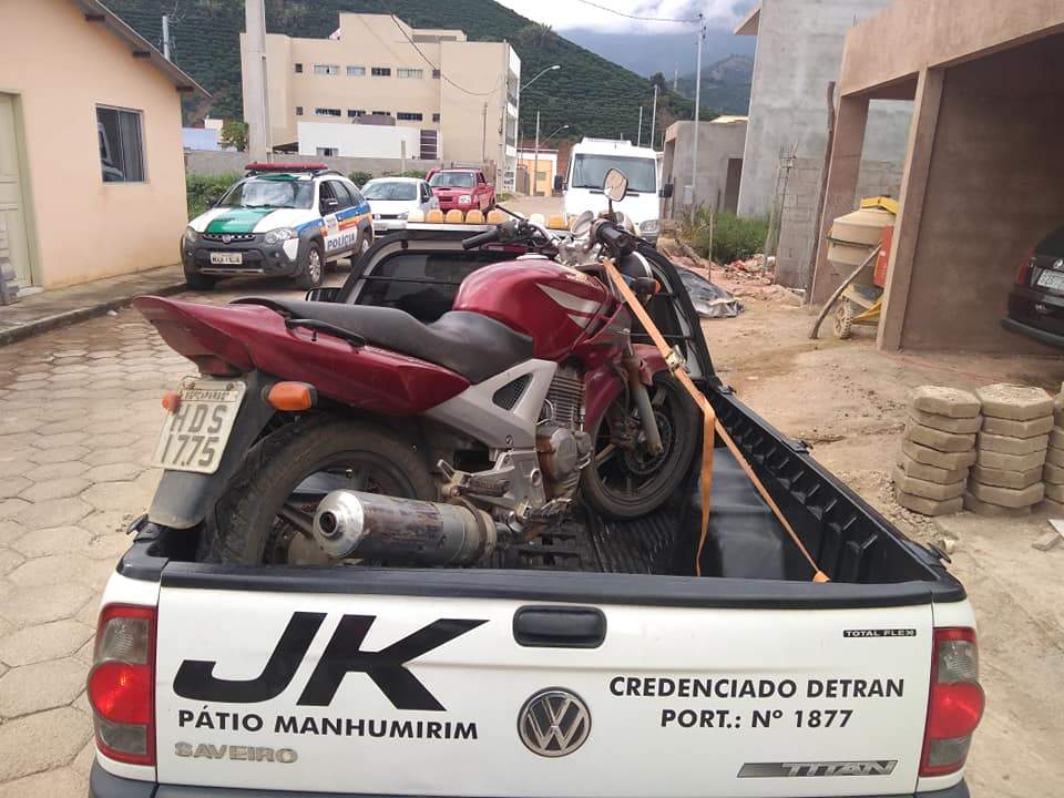 A partir de uma informação, os policiais foram até o local e encontraram a motocicleta Honda/Twister, vermelha, placa HDS 1775 - Caparaó/MG. O veículo havia sido furtado durante a madrugada na festa da cidade de Caparaó.