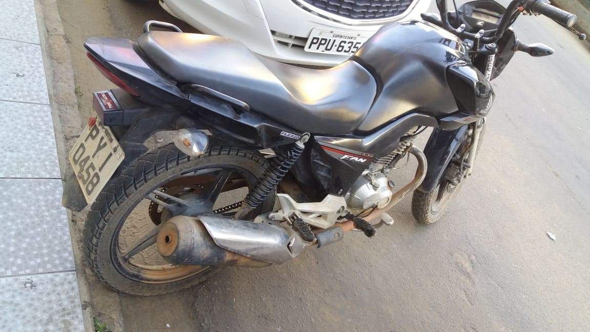 Após receberem denúncia anônima que dois homens estariam em uma motocicleta Honda Fan 160, de cor preta, emplacada em Mutum/MG, no bairro Quilombo em Iúna/ES, e que a motocicleta poderia ser produto de furto/roubo, os militares deslocaram até o local.