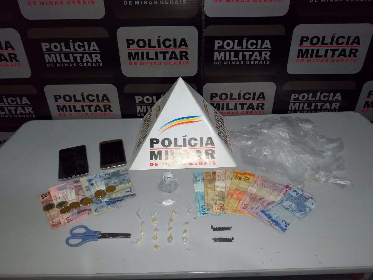 Após denúncia anônima sobre tráfico de drogas, a PM empenhou militares para averiguações. Os policiais depararam com um rapaz de 19 anos e um adolescente de 17 anos.