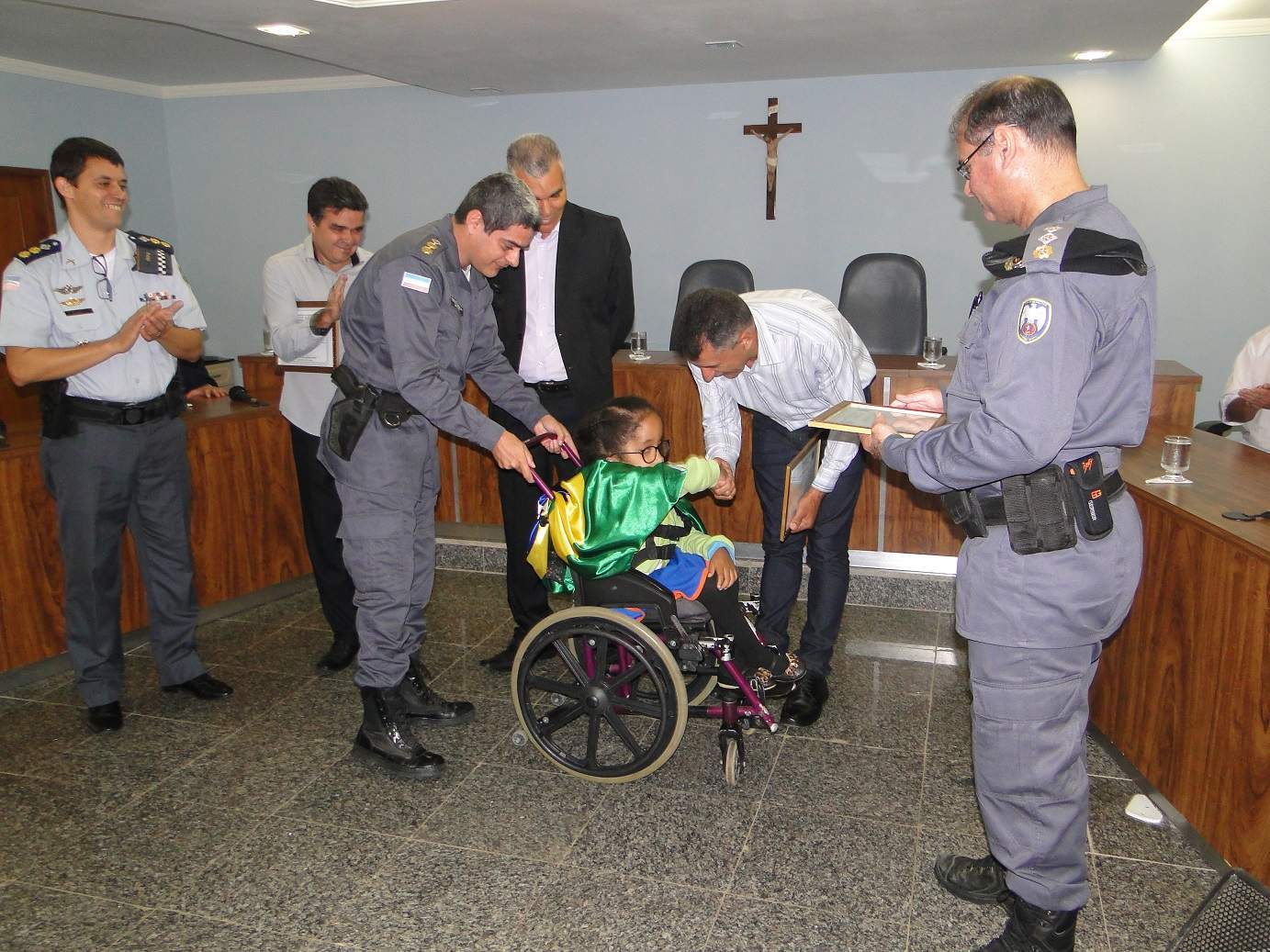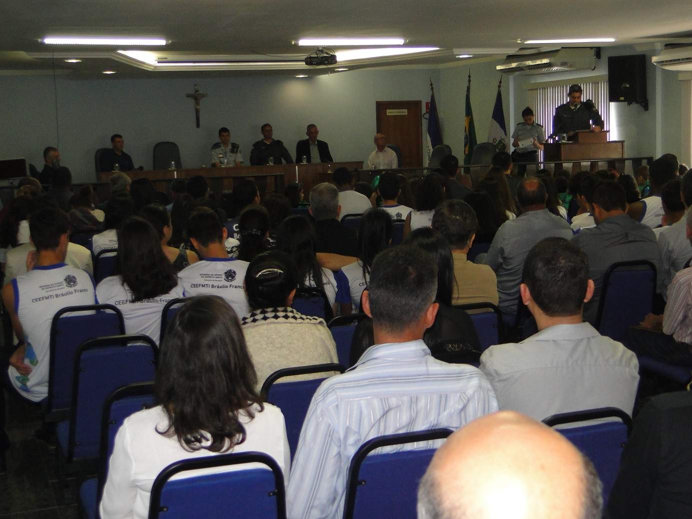 A solenidade que ocorreu no auditório da Câmara Municipal de Muniz Freire contou também com participação de gerentes de bancos da cidade, conselheiros tutelares, vereadores, secretários do município, diretores de escola, empresários e funcionários da Câmara Municipal. A solenidade foi abrilhantada pela presença de crianças e adolescentes, alunos da Escola Lia Therezinha Merçon Rocha e da Escola Viva Bráulio Franco. Os alunos da Escola Lia Therezinha foram acompanhados pela Professora Julieta Sá Viana Pimentel, cujo filho é policial militar no 3ºBPM, e os alunos da Escola Viva foram juntamente da Diretora Darcila Aparecida da Silva Castro. Inclusive, alguns alunos foram escolhidos para entregar a diversas homenagens feitas a militares e aos civis presentes na solenidade. Entre os alunos da Escola Viva estava Vitor Sobreira, filho de policial militar, e que também tem o sonho de ser Policial Militar.