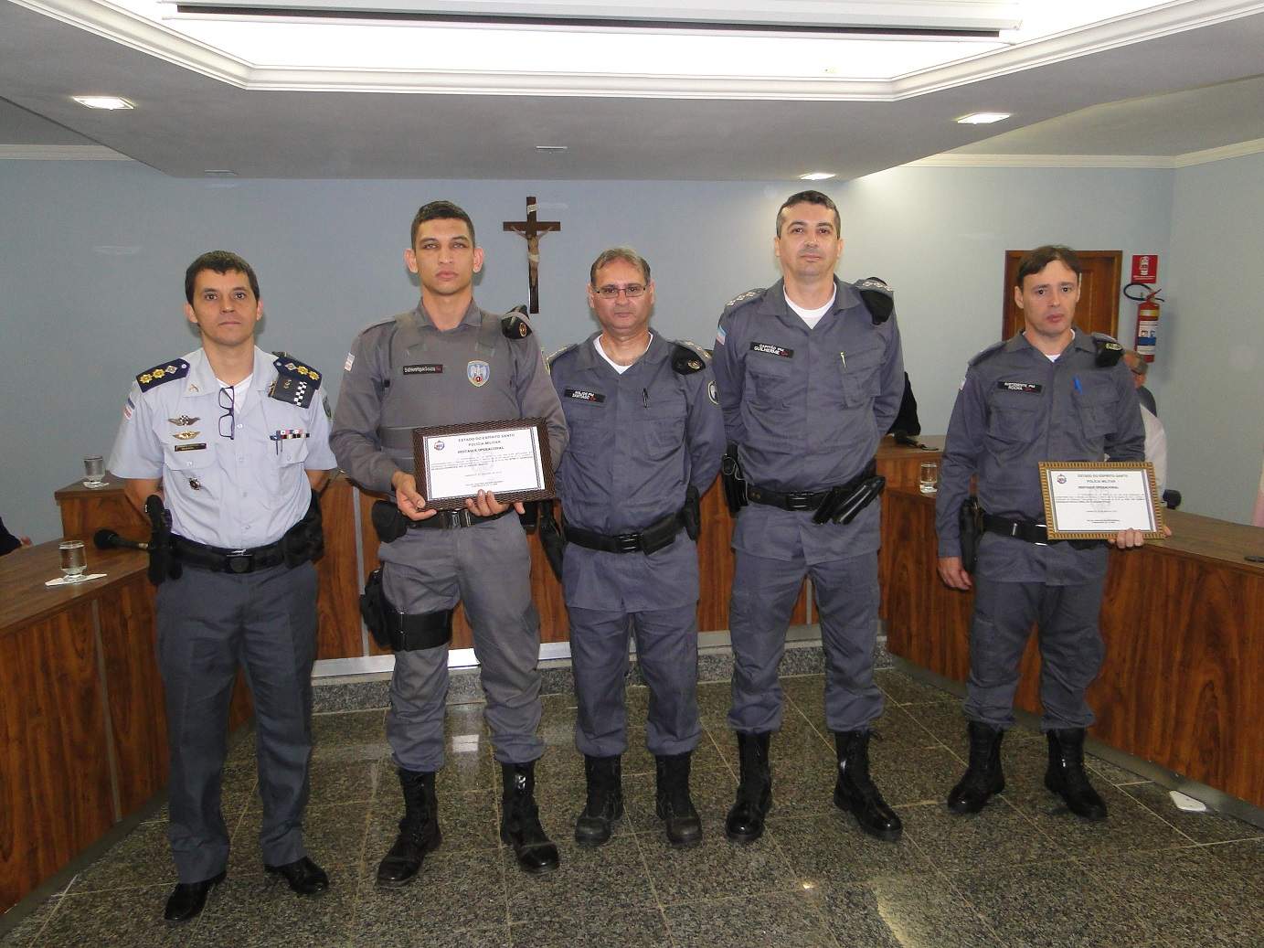 Os civis homenageados com o Diploma Amigo do 14ºBPM foram a senhora Derli Barbosa, prestadora de serviços no 14º BPM, os senhores Leolindo Areias, João Francisco Areias, Breno Lorencini e Emir Pires, empresários de Muniz Freire, que muito auxiliam a Polícia Militar. Os militares da ativa homenageados foram o Subtenente Aguinaldo Rocha, Destaque Operacional do 1º Trimestre e o Soldado Henrique Souza, Destaque Operacional do 2ºTrimestre. Por fim, foram agraciados com o Diploma Fibra de Ortiz, instituído no 14ºBPM para agradecer aqueles militares que prestaram sua contribuição à sociedade capixaba na região do Caparaó por 30 anos, e que estão na Reserva Remunerada, o 2ºTen QOA José Rodrigues, o 1ºSgt Wilson, que também é vereador em Muniz Freire e o 1ºSgt José Maria Bergamini.