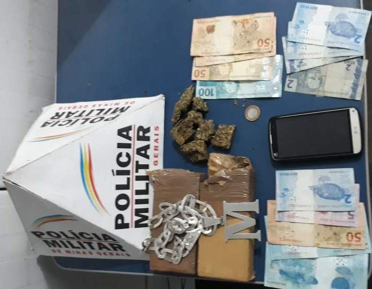 Segundo a PM, o rapaz é conhecido no meio do tráfico em Manhumirim. Ele estava com um celular, um cordão de prata com a letra M e 250 reais.