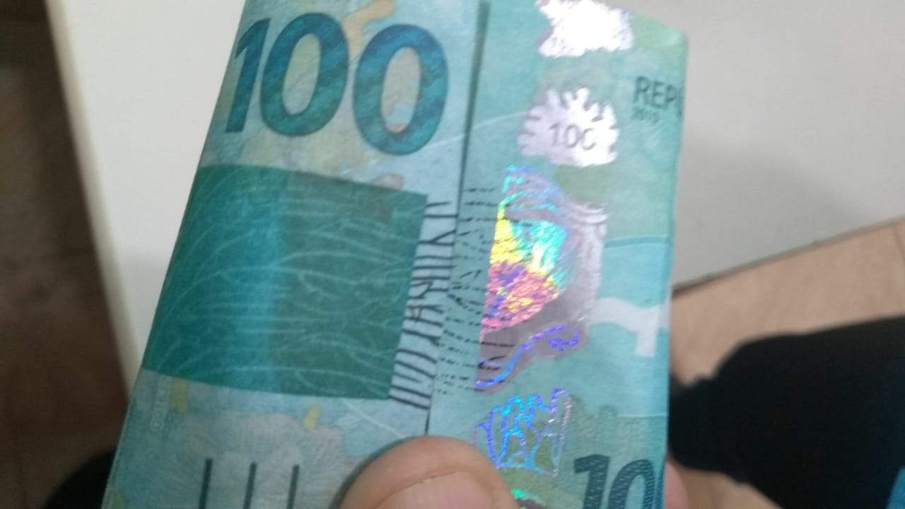 Chegando ao local, a atendente da loja informou aos policiais que dois indivíduos chegaram ao estabelecimento comercial ambos morenos, magros, um deles trajava uma camiseta regata vermelha, tipo jogador de basquete com um número 10 na frente e bermuda, o outro também de bermuda usava uma blusa de moleton de cor escura, de capuz começaram a ver mercadorias e compraram três sandálias de dedo, pagando com uma nota de cem reais. “A moça disse que observou os itens de segurança da nota como marca d´’agua, fio de segurança e ainda passou a caneta testa nota e na hora nada apresentava que a nota era falsa, então ela voltou R$ 60 reais de troco à dupla que saiu da loja e foi embora”, disse Sargento Ageu.