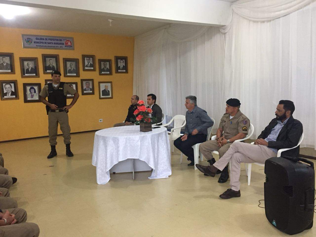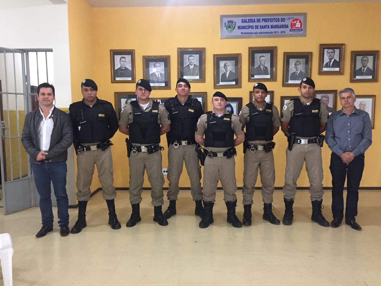 SANTA MARGARIDA (MG) - Foram apresentados em Santa Margarida novos policias que estarão compondo o quadro de segurança do município. Na oportunidade participaram autoridades, representantes da Prefeitura Municipal e do Poder Legislativo entre outros. O evento contou com a fala do Comandante do Pelotão da Polícia Militar de Matipó, Tenente Moreira, que destacou a vinda dos novos policiais.