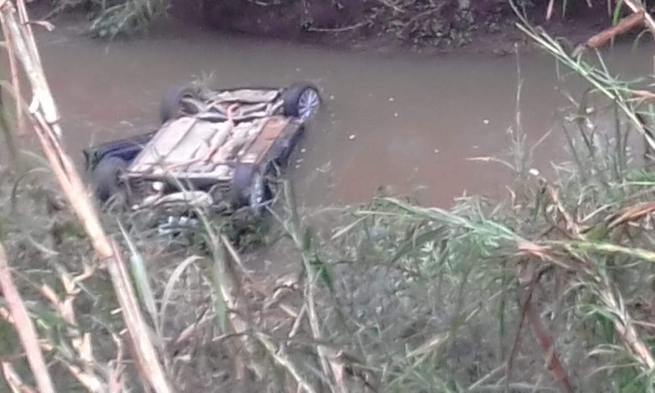 SÃO JOÃO DO MANHUAÇU (MG) - Um carro saiu da pista e caiu no leito do rio Manhuaçu, no km 595 da BR-116, trecho São João do Manhuaçu - Realeza, na manhã deste domingo, 05/08.