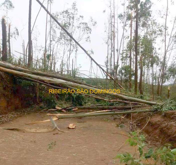 No distrito de Ribeirão São Domingos, no entanto, os estragos foram maiores telhados inteiros foram destruídos com a força dos ventos e granizo da madrugada. Felizmente, ninguém se feriu.