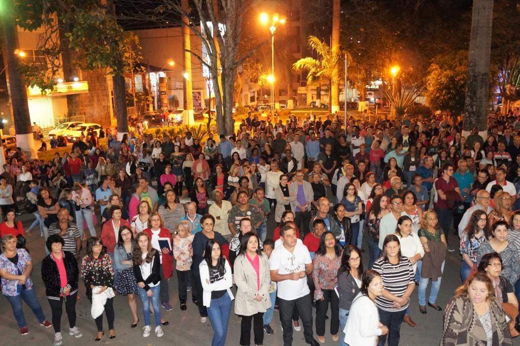 À noite, a praça da Matriz ficou lotada de devotos, que acompanharam a procissão que percorreu as principais ruas da cidade e, em seguida, a celebração da missa festiva, celebrada pelo Superior da Congregação Sacramentina de Nossa Senhora, padre “Mundinho” e concelebrada pelos padres Carlos Altoé, Welton, Gedeir e Sebastião Santana.