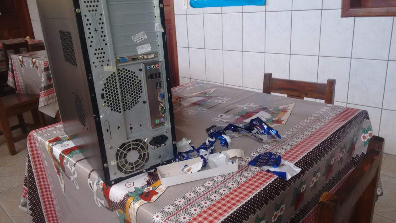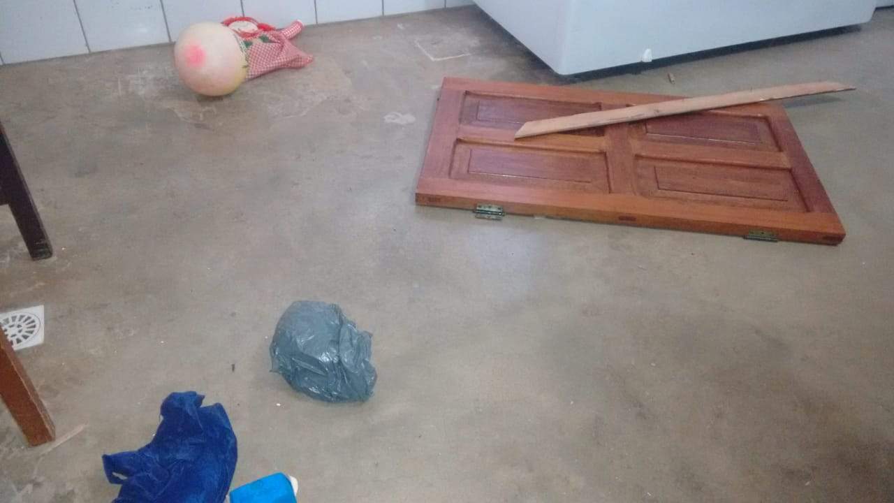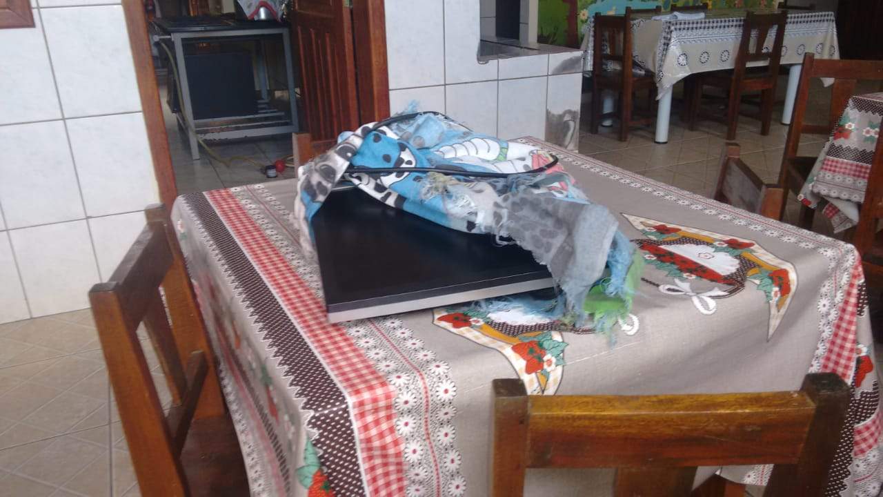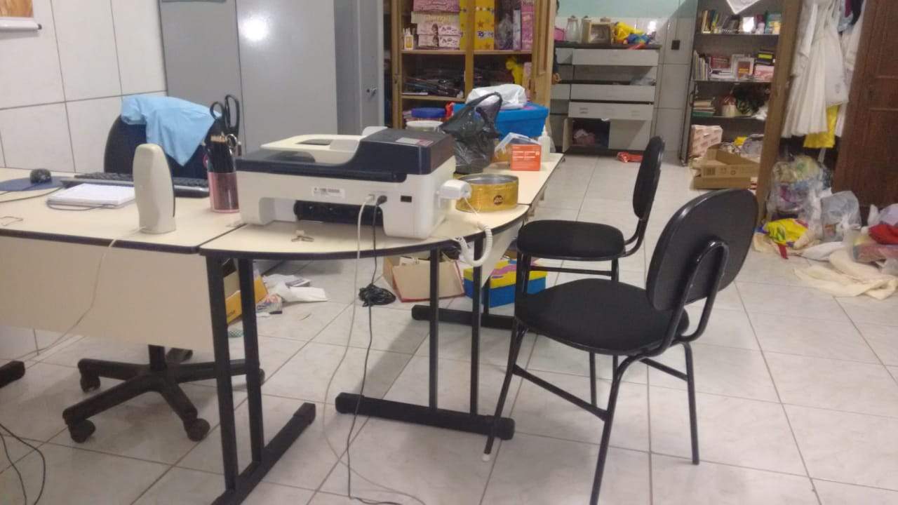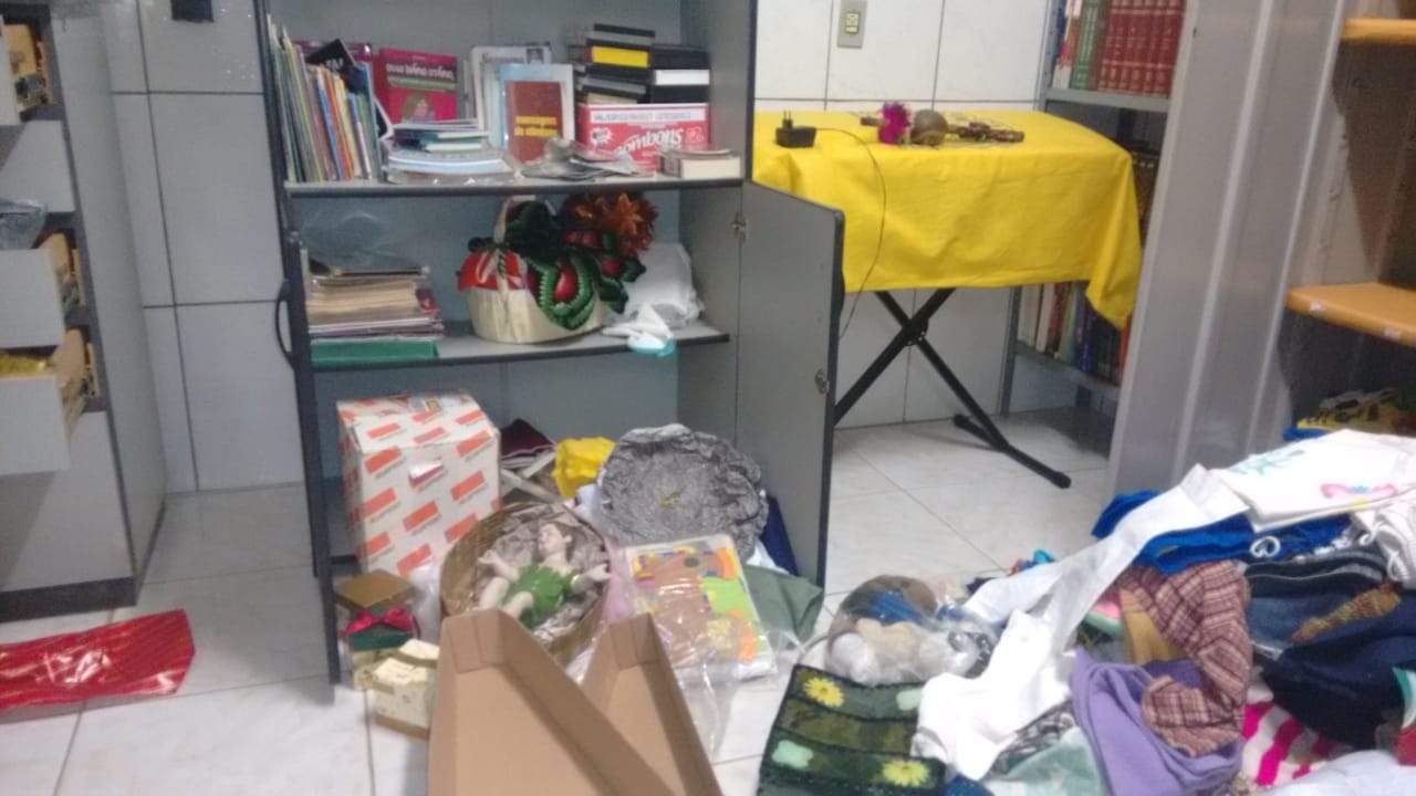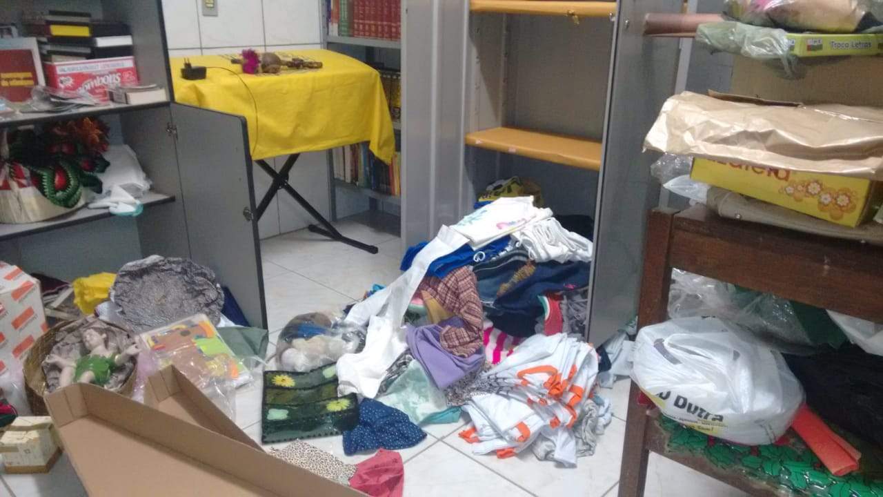 Funcionárias chegaram para trabalhar e encontraram móveis revirados e janelas e portas arrombadas. A Polícia Militar apurou que os ladrões entraram através de um buraco feito em uma cerca de alambrado nos fundos da quadra de esportes.