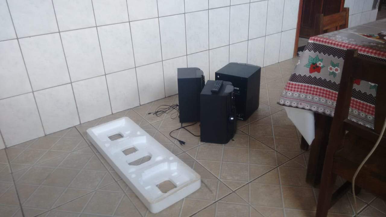 Foram furtados dois microfones, dois aparelhos de DVD e quatro botijas de gás. Ainda foram levados diversos pacotes de biscoitos, latas de doce, pacotes de leite em pó, latas de extrato de tomate e carnes congeladas que estavam no freezer.
