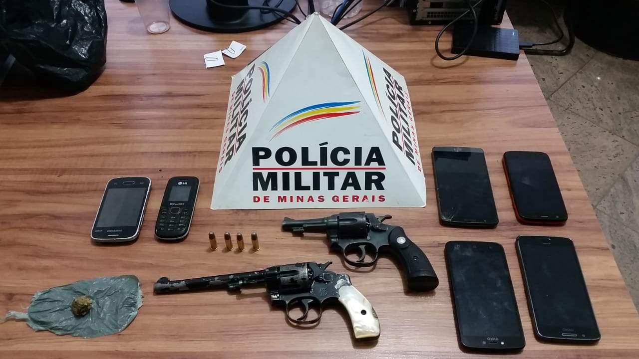 Durante a tarde, os policiais civis e militares foram até a casa e encontraram o rapaz denunciado. No local, foram apreendidas duas armas de fogo, calibre 32, uma porção de maconha e seis aparelhos celulares.