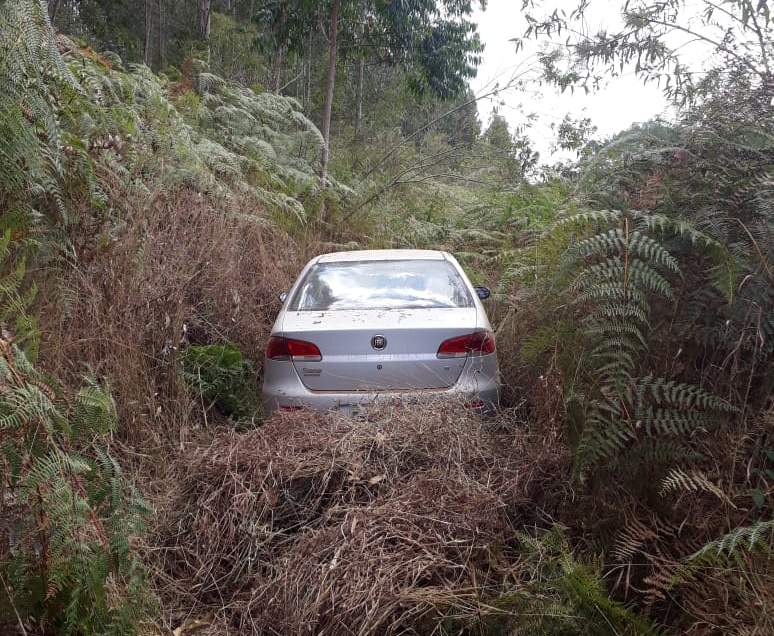 Depois do desfecho da ocorrência do final de semana, a PM recebeu informação dando conta de que na mesma fazenda havia um veículo escondido no meio de um matagal, coberto por um fecho de capim.