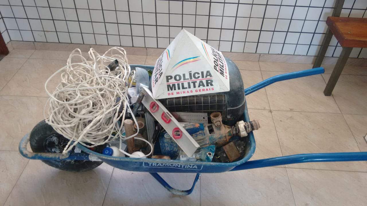 Os militares foram até as vielas situadas no bairro Nossa Senhora Aparecida e conseguiram localizar e prender o autor e ainda recuperaram os materiais furtados.