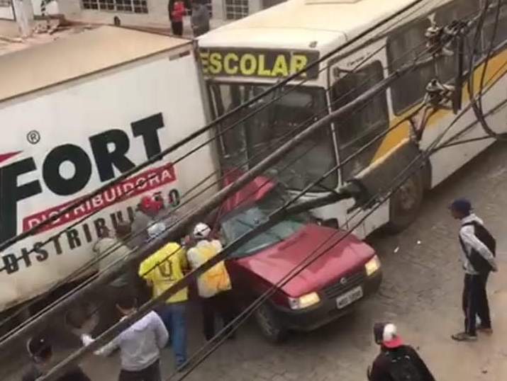 O motorista não conseguiu parar o ônibus e atingiu a traseira de um Chevrolet Ônix, que desviou para a direita após o impacto. Em seguida, o escolar colidiu na traseira de um Fiat Uno, vindo a prensar o veículo lateralmente na carroceria de um caminhão, que por sua vez bateu num Chevrolet Classic.