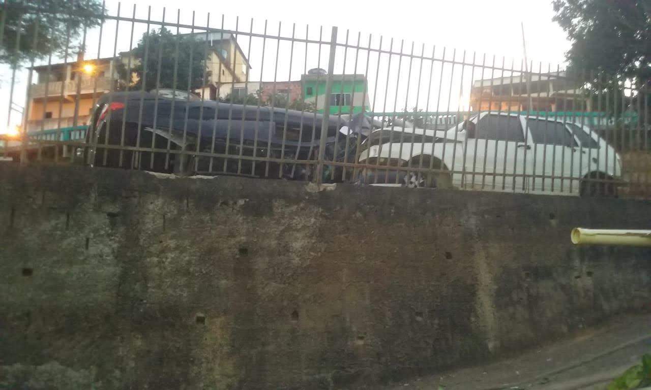 A Polícia Militar Rodoviária registrou a ocorrência. O veículo Toyota Corolla seguia pela rodovia MG-111, sentido Manhuaçu para Manhumirim, quando o condutor perdeu o controle direcional do veículo, saiu da pista de rolamento e parou após atingir o veículo Fiat Uno. A rua Pirapetinga fica abaixo da rodovia estadual.