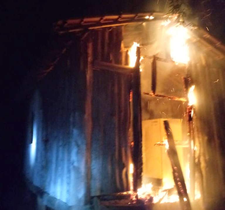Quando chegaram ao terreiro da casa, os policiais notaram que era um imóvel de madeira e fogo havia consumido a cozinha e parte do telhado.