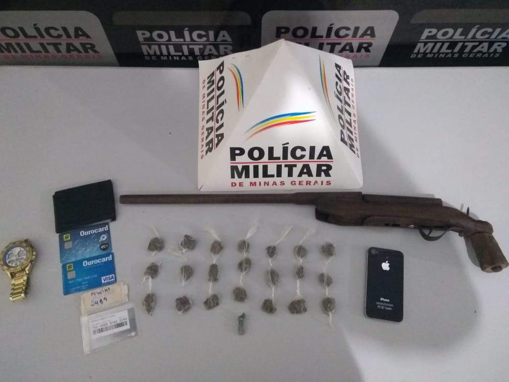 Na casa em que o homem tentou entrar, a PM visualizou uma pedra de crack pronta para consumo em cima de um móvel da sala. No interior do imóvel, foram localizadas 21 buchas de maconha embaladas e prontas para serem comercializadas, uma garrucha de fabricação caseira e uma motocicleta sem placa de identificação.