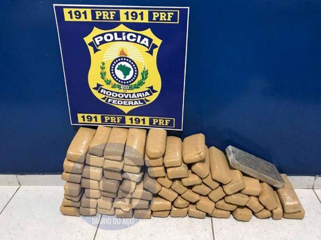CARATINGA (MG) - Uma ocorrência de tráfico de drogas ilícitas foi registrada pela Polícia Rodoviária Federal (PRF), durante a noite desta terça-feira (11), no KM 532 da BR-116, próximo à balança desativava do Departamento Nacional de Infraestrutura Terrestre (Denit). Um homem, suspeito de ser o dono da droga, conseguiu fugiu ao deixar para trás quase 70 tabletes de maconha apreendidos pelos policiais.