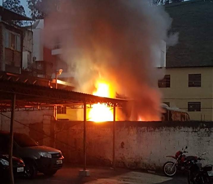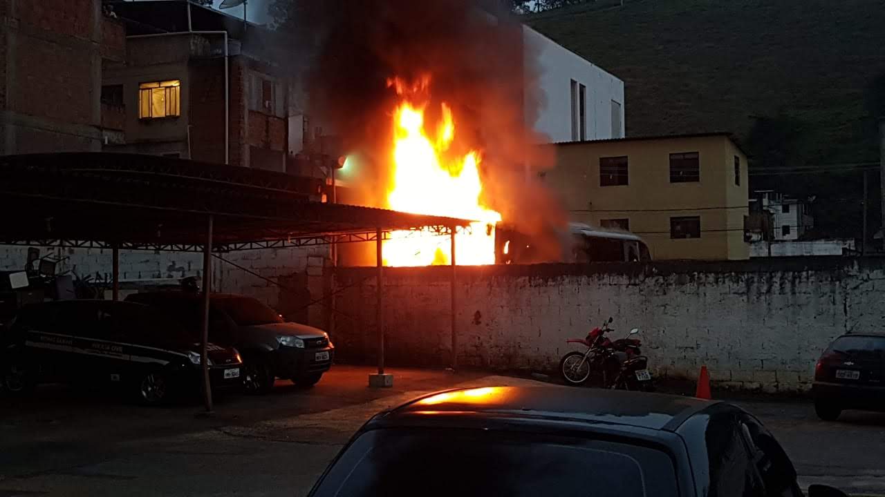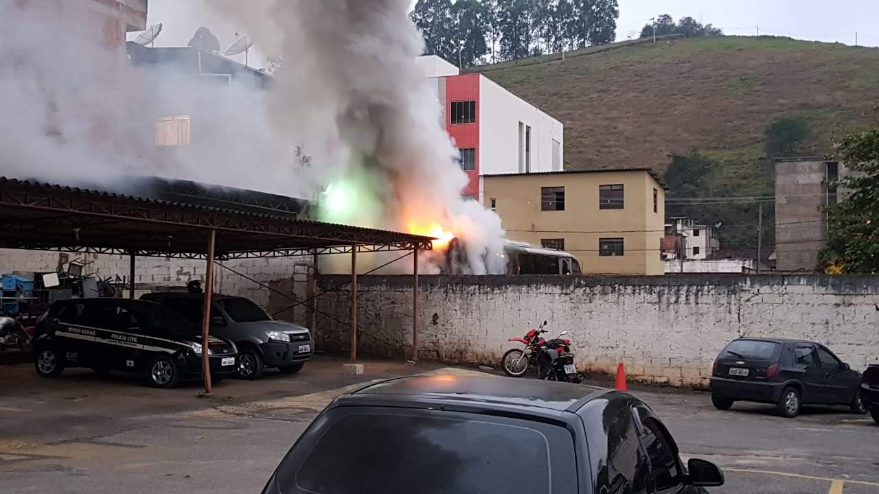 MANHUAÇU (MG) - O Corpo de Bombeiros controlou um incêndio num ônibus numa garagem ao lado da Delegacia de Polícia Civil, no bairro Bom Pastor, em Manhuaçu, nesta segunda-feira, 17/09.