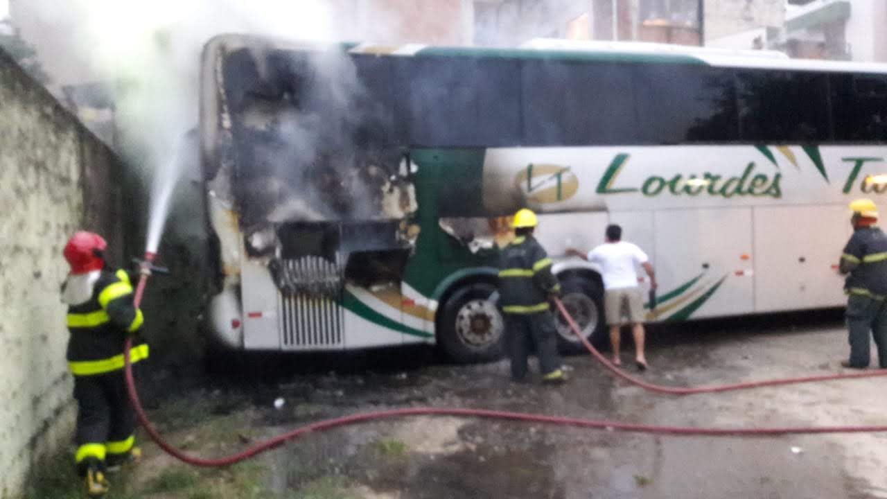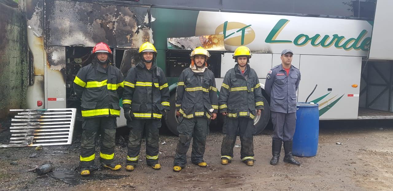 Por volta de 5:30, os Bombeiros foram acionados por conta do fogo e fumaça na parte traseira do um ônibus de turismo.